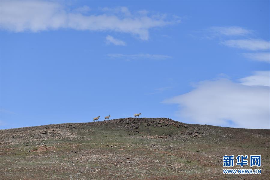 7月7日在可可西里卓乃湖區(qū)域拍攝的藏羚羊。目前正值藏羚羊產(chǎn)仔季。來自青海三江源、新疆阿爾金山、西藏羌塘等地的藏羚羊來到位于青海省可可西里腹地、被譽為“藏羚羊大產(chǎn)房”的卓乃湖區(qū)域產(chǎn)仔。新華社記者 張龍 攝