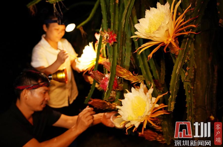 廣西融水:火龍果果農(nóng)夏夜“點花”忙