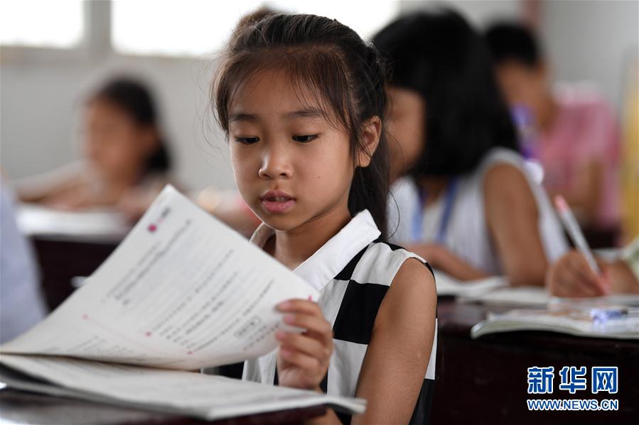 7月16日,在安徽省宿松縣洲頭鄉(xiāng)中心小學集中安置點,小朋友在做暑假作業(yè)。新華社記者劉軍喜攝