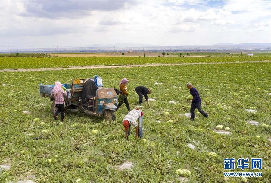 7月16日,在寧夏中衛(wèi)市香山鄉(xiāng)硒砂瓜萬(wàn)畝示范基地,瓜農(nóng)在采收硒砂瓜。近日,寧夏中衛(wèi)市迎來(lái)硒砂瓜豐收季。硒砂瓜是中衛(wèi)市的特色農(nóng)產(chǎn)品,近年來(lái),當(dāng)?shù)夭扇〖夹g(shù)創(chuàng)新、規(guī)模化種植、休耕輪作等多項(xiàng)舉措,讓硒砂瓜種植成為當(dāng)?shù)剞r(nóng)民增收致富的重要產(chǎn)業(yè)。據(jù)了解,今年中衛(wèi)市硒砂瓜種植面積為69.7萬(wàn)畝。新華社記者楊植森攝