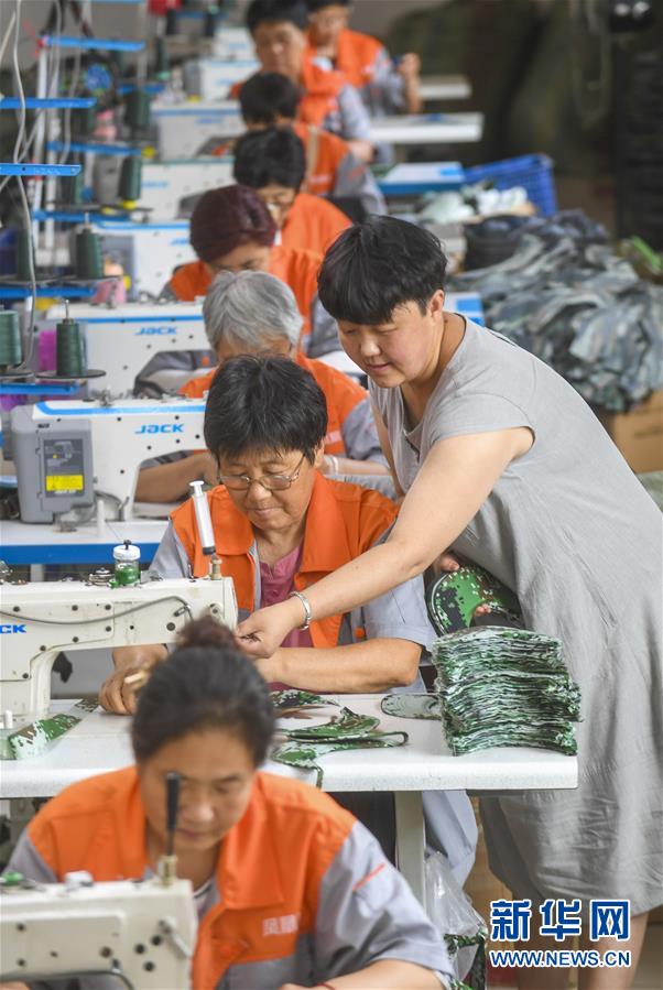 7月16日,在河北省深州市高古莊鎮(zhèn)鳳凰池村扶貧車間,馬京娜指導(dǎo)車間工人加工帽子。馬京娜是河北省深州市高古莊鎮(zhèn)鳳凰池村的致富能手。在市、鄉(xiāng)、村各級(jí)部門(mén)的大力支持下,馬京娜創(chuàng)辦扶貧車間,為建檔立卡貧困戶設(shè)立崗位,帶領(lǐng)貧困戶脫貧增收。目前,馬京娜的扶貧車間提供就業(yè)崗位30多個(gè)。新華社記者李曉果攝