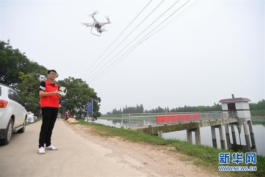 7月17日,在岳陽市華容縣治河渡鎮(zhèn)新華垸附近水域,工作人員準備利用無人機查看大堤情況。為力爭安全度汛,湖南省岳陽市華容縣織密人防、物防、技防“三防”網(wǎng)絡,加強應急值守和巡查排險工作,采取“以船代倉”“以車代倉”等多種方式靈活儲備防汛物資,在險工險段布置攝像頭實時監(jiān)控,利用無人機對人員難以到達的位置進行巡查。新華社記者陳澤國攝
