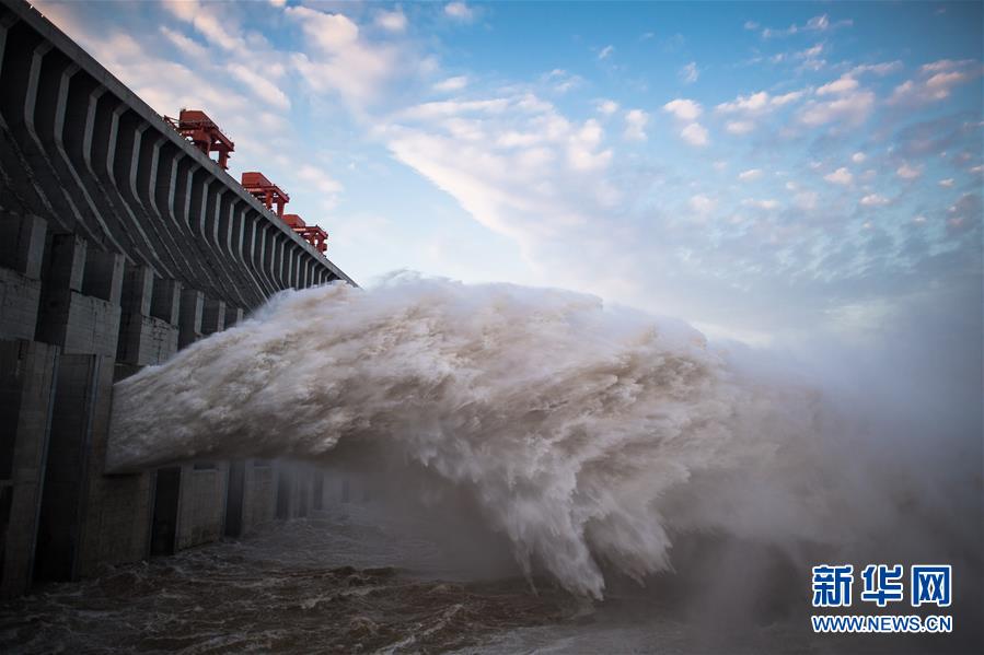 7月19日,三峽樞紐開(kāi)啟泄洪深孔泄洪。19日20時(shí),三峽水庫(kù)入庫(kù)流量4.6萬(wàn)立方米/秒,較本輪洪水的峰值6.1萬(wàn)立方米/秒下降了1.5萬(wàn)立方米/秒?!伴L(zhǎng)江2020年第2號(hào)洪水”平穩(wěn)通過(guò)三峽大壩。新華社記者肖藝九攝