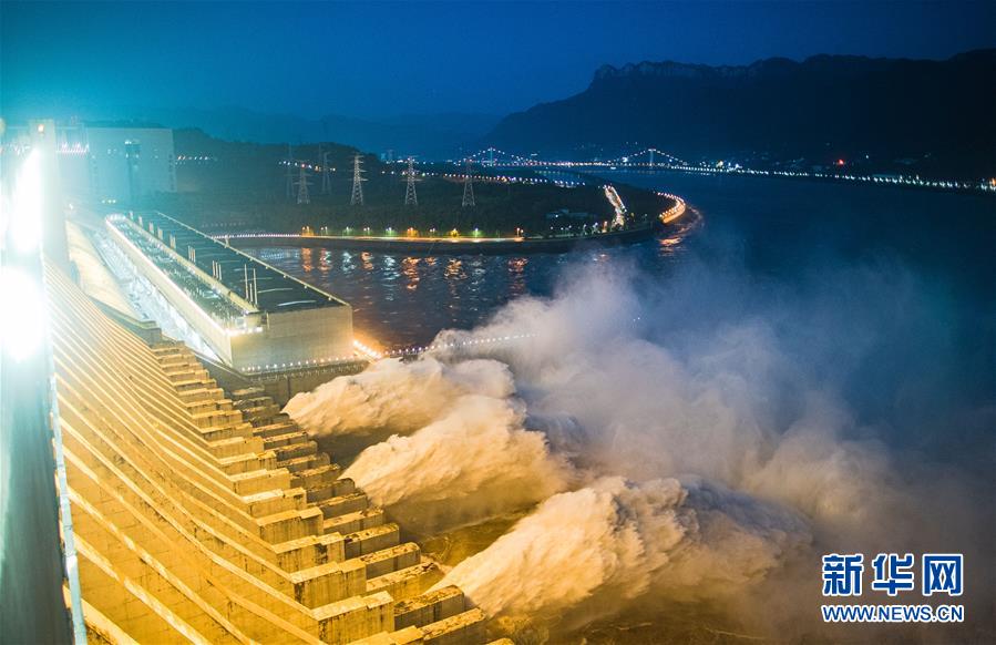 7月19日,三峽樞紐開啟泄洪深孔泄洪。19日20時(shí),三峽水庫入庫流量4.6萬立方米/秒,較本輪洪水的峰值6.1萬立方米/秒下降了1.5萬立方米/秒?!伴L江2020年第2號(hào)洪水”平穩(wěn)通過三峽大壩。新華社記者肖藝九攝