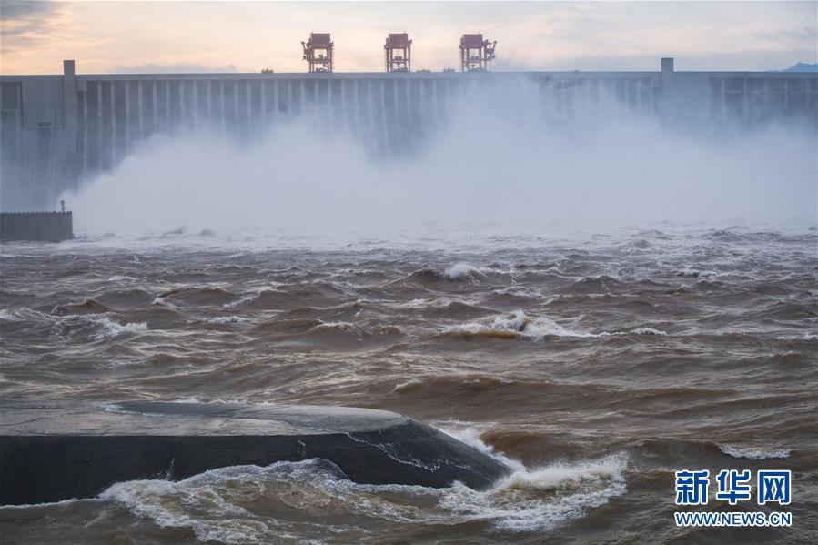 7月19日,三峽樞紐開啟泄洪深孔泄洪。19日20時,三峽水庫入庫流量4.6萬立方米/秒,較本輪洪水的峰值6.1萬立方米/秒下降了1.5萬立方米/秒。“長江2020年第2號洪水”平穩(wěn)通過三峽大壩。新華社記者肖藝九攝
