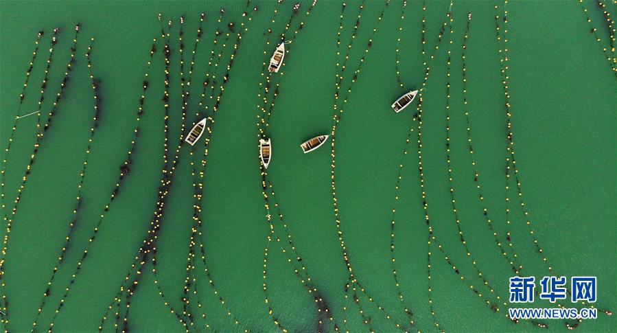7月15日拍攝的山東省榮成市一處國家級海洋牧場(無人機照片)。新華社記者王凱攝