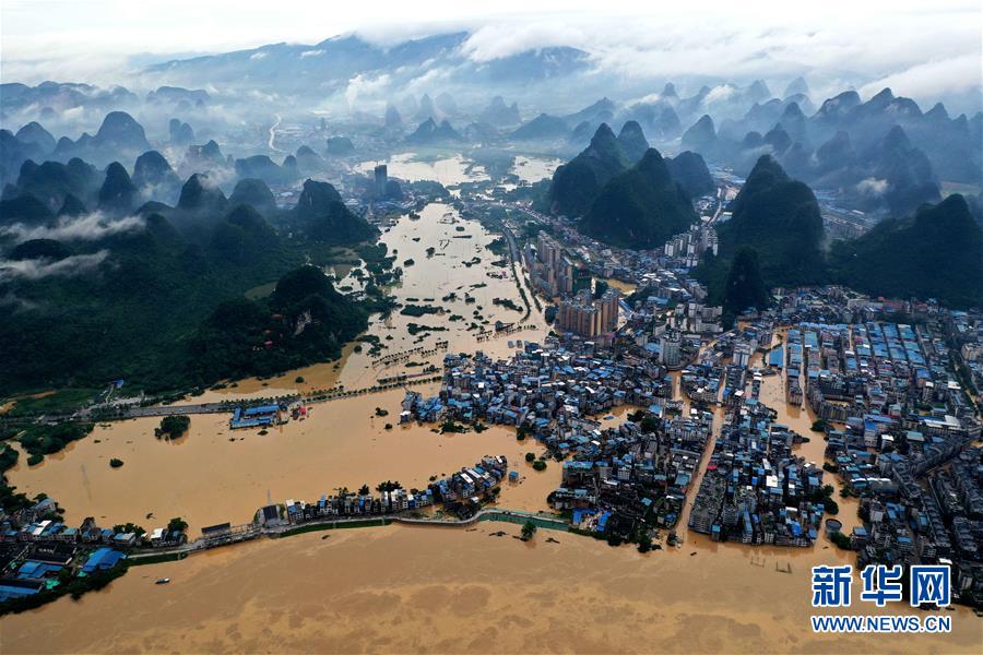 7月11日在廣西柳州市融水苗族自治縣拍攝的融江(無人機照片)。受連日強降雨影響,廣西柳州市融水苗族自治縣融江出現超警戒水位。新華社記者黃孝邦攝