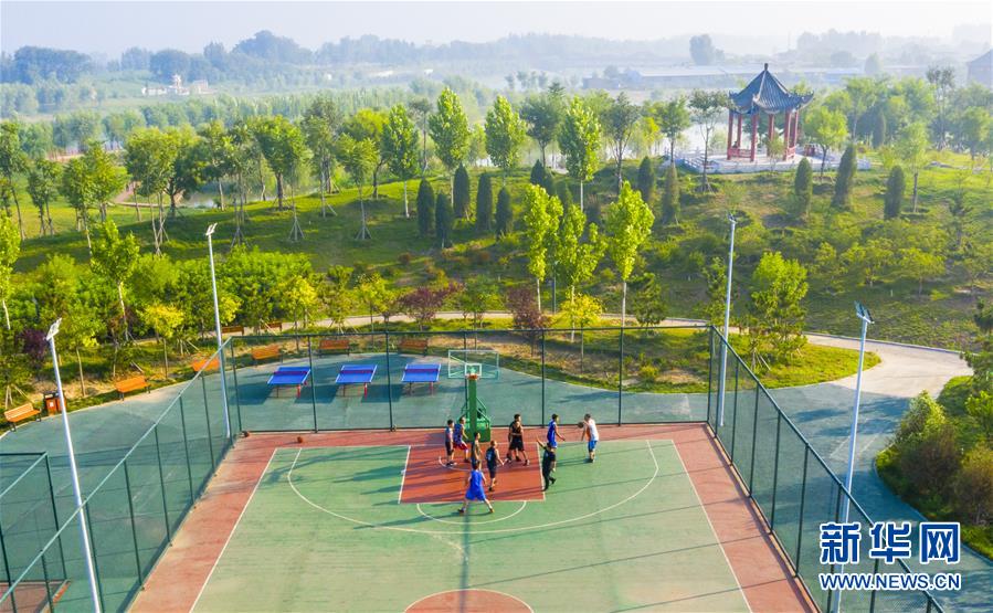 7月20日,市民在河北省武邑縣觀津公園內(nèi)健身(無人機(jī)照片)。新華社記者李曉果攝