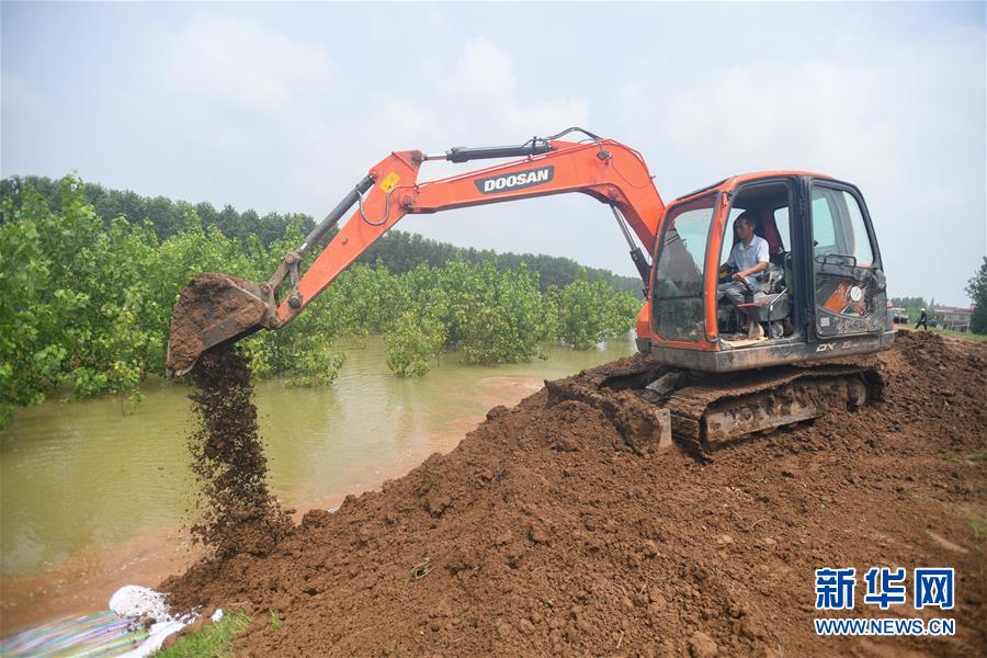 7月20日,在永固垸西線防洪大堤,工作人員處置滲漏險(xiǎn)情。新華社記者陳澤國(guó)攝
