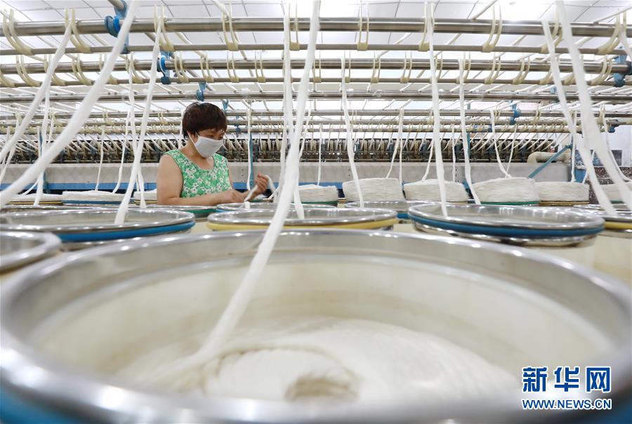 7月20日,工人在灤南縣長凝鎮(zhèn)的一家紡織廠生產(chǎn)車間里工作。近年來,河北省灤南縣大力發(fā)展村邊民營企業(yè),引導企業(yè)在鄉(xiāng)鎮(zhèn)村邊建廠,帶動當?shù)?萬多名農(nóng)村群眾在村邊就近就業(yè),實現(xiàn)穩(wěn)步增收。新華社記者楊世堯攝
