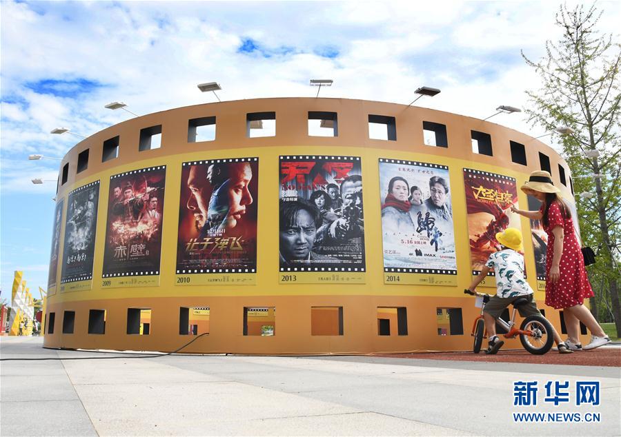 2019年8月25日,一對母子在電影海報展區(qū)參觀。8月24日,“我和我的祖國”慶祝新中國成立70周年國產(chǎn)優(yōu)秀電影海報展在青島西海岸新區(qū)啟動,百余幅電影海報與公眾見面。新華社記者李紫恒攝