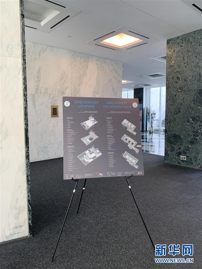7月20日,在位于紐約的聯(lián)合國(guó)總部,秘書處大樓入口附近豎立著一塊標(biāo)明消毒液擺放點(diǎn)的指示牌。受新冠疫情影響而實(shí)行遠(yuǎn)程辦公4個(gè)多月的紐約聯(lián)合國(guó)總部20日進(jìn)入重啟第一階段。按規(guī)定,該階段每天進(jìn)入總部大樓人數(shù)不能超過(guò)400人。新華社記者王建剛攝