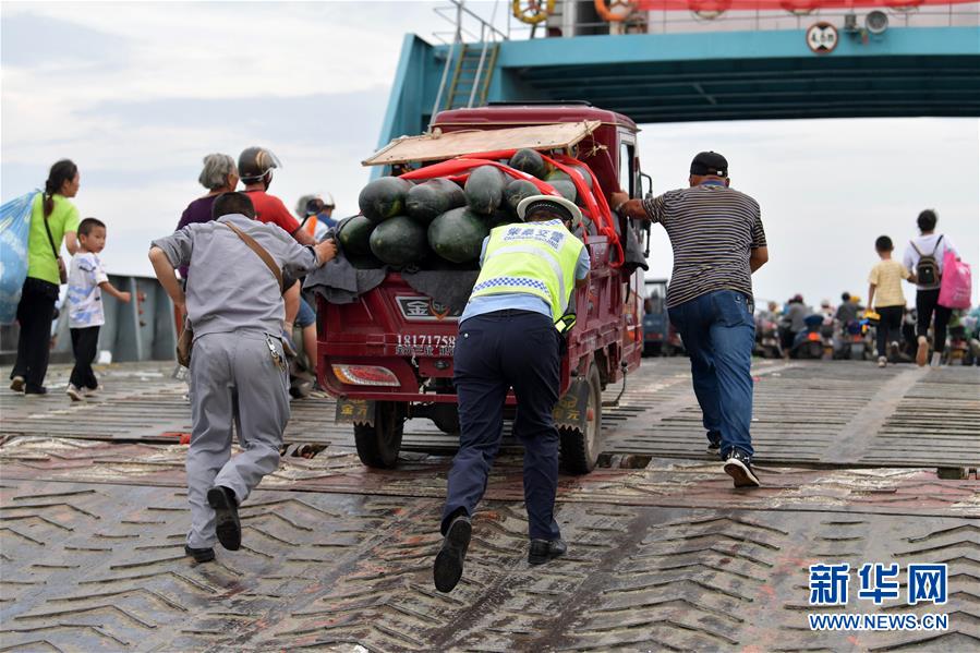 在江西省九江市柴桑區(qū)江新洲的渡口,交警協(xié)助居民有序轉(zhuǎn)移(7月12日攝)。新華社記者彭昭之?dāng)z
