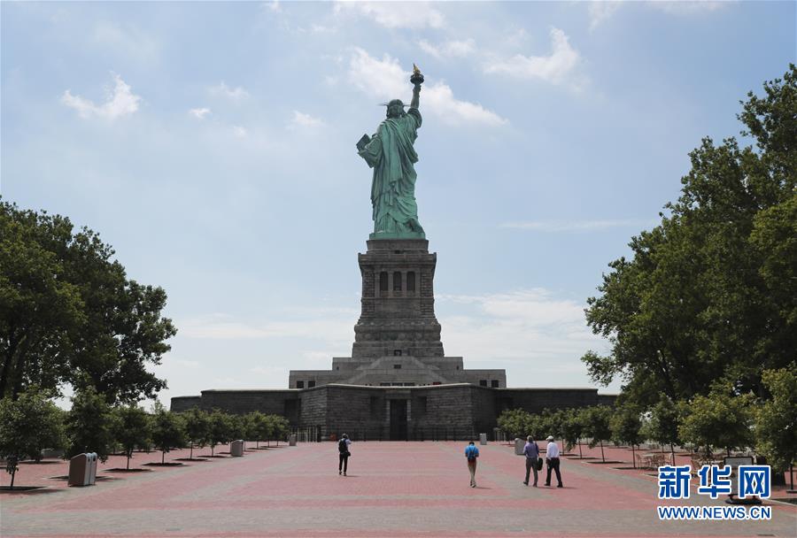 7月20日,參觀者在美國(guó)紐約自由島游覽。美國(guó)紐約市20日繼續(xù)推進(jìn)經(jīng)濟(jì)重啟計(jì)劃,宣布開始進(jìn)入解封新階段,進(jìn)一步允許部分低風(fēng)險(xiǎn)文娛活動(dòng)重啟。自由女神像所在的自由島對(duì)公眾開放,但雕像內(nèi)部和博物館仍關(guān)閉。新華社記者王迎攝