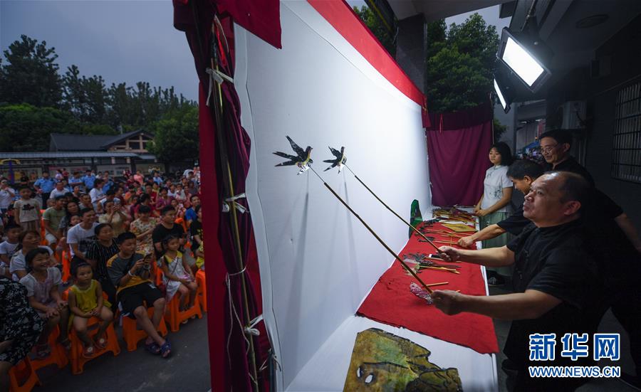 當日,浙江省杭州市余杭區(qū)塘棲鎮(zhèn)河西埭村“衛(wèi)家班皮影戲”劇團的藝人們來到余杭區(qū)喬司街道和睦橋村進行演出,這是近期杭州市余杭區(qū)夏季鄉(xiāng)村“文化走親”的重要活動之一。今年6月開始,杭州市余杭區(qū)塘棲鎮(zhèn)組織多支文化表演團體以“文化走親”的形式,先后送戲到余杭區(qū)近20個鄉(xiāng)村文化禮堂,豐富夏日鄉(xiāng)村百姓文化生活。在余杭塘棲一帶,歷史上曾活躍著一支以演出皮影戲出名的民間戲班子,號稱“衛(wèi)家班”。2016年,塘棲鎮(zhèn)河西埭村在文化禮堂的建設過程中,將當地傳統(tǒng)的“衛(wèi)家班皮影戲”作為“一村一品”特色項目進行了搶救性保護。2018年12月,“衛(wèi)家班皮影戲”被列入杭州市非物質文化遺產代表性項目名錄。新華社記者徐昱攝
