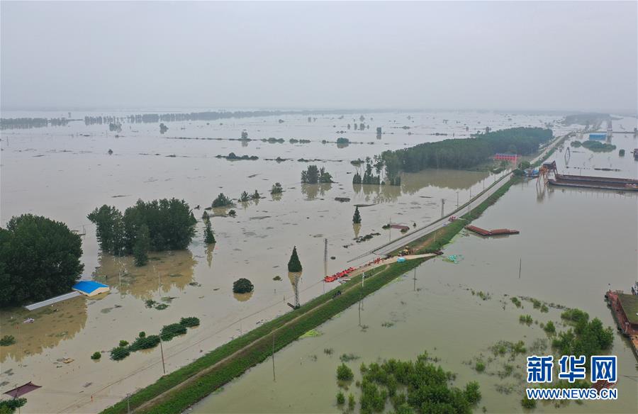 這是7月21日拍攝的被淹的南京市高淳區(qū)陽(yáng)江鎮(zhèn)勝利圩(畫(huà)面左側(cè))(無(wú)人機(jī)照片)。新華社記者季春鵬攝