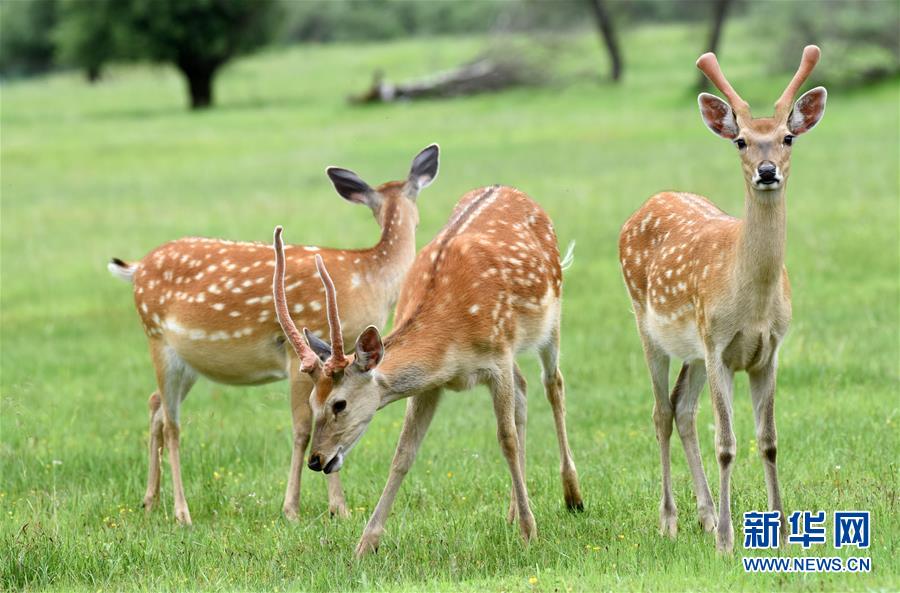 阿壩縣查理鄉(xiāng)神座村里的梅花鹿(7月5日攝)。新華社記者陳燮攝
