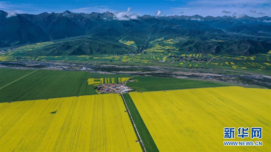 這是7月22日拍攝的門源回族自治縣的油菜花田(無人機(jī)照片)。時(shí)下正值高原油菜花競相綻放的季節(jié),在青海省海北藏族自治州門源回族自治縣,金黃色的油菜花在高原藍(lán)天和云霧映襯下形成一幅壯麗畫卷,吸引游客前來觀賞。新華社記者 吳剛 攝