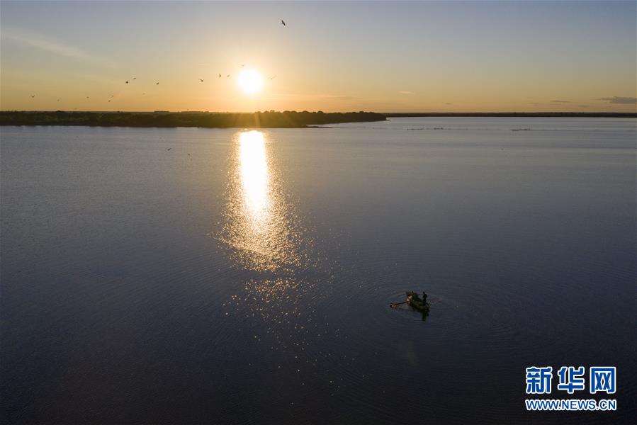 7月24日,漁民在大力加湖中捕魚(無人機照片)。大力加湖位于“中國東極”黑龍江省撫遠(yuǎn)市,面積28.5平方公里,兩岸地勢低平,多濕地、草原,湖內(nèi)水產(chǎn)豐富。夏日傍晚時分,漁民捕魚歸來,美麗畫卷映入眼簾。新華社記者謝劍飛攝