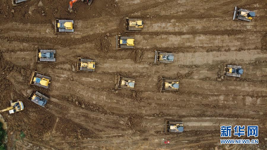 7月28日,在姜唐湖蓄洪區(qū)戴家湖一處涵閘險情處置現(xiàn)場,人們操作機械設(shè)備在搶筑臨時圩堤(無人機照片)。新華社記者張端攝