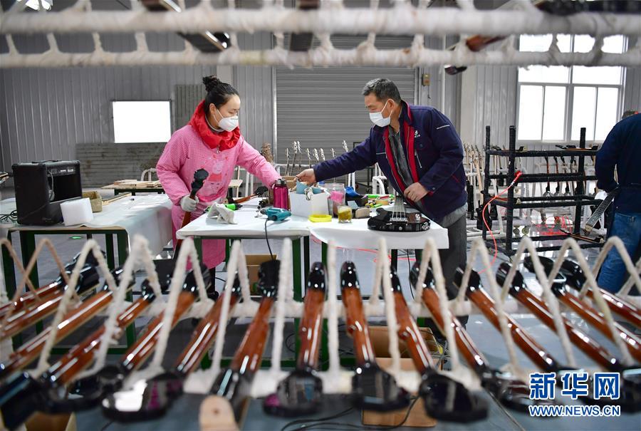 在陜西漢中市城固縣博望街道辦事處江灣社區(qū)一家樂器廠內(nèi),工人在制作貝斯(3月12日攝)。陜南地區(qū)地處秦巴山區(qū),是陜西脫貧攻堅(jiān)的主戰(zhàn)場(chǎng)。近年來(lái),陜南各縣區(qū)因地制宜、精準(zhǔn)施策,通過(guò)發(fā)展社區(qū)工廠、特色種植、旅游扶貧、技能培訓(xùn)、電商帶貨等措施,促進(jìn)多種產(chǎn)業(yè)發(fā)展,助力農(nóng)民增收。新華社記者邵瑞攝