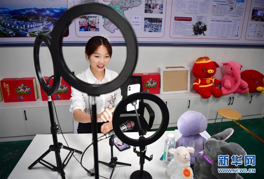 7月24日,在陜西平利縣老縣鎮(zhèn)錦屏社區(qū)一間直播間,電商主播王秀梅在推介當?shù)禺a品。陜南地區(qū)地處秦巴山區(qū),是陜西脫貧攻堅的主戰(zhàn)場。近年來,陜南各縣區(qū)因地制宜、精準施策,通過發(fā)展社區(qū)工廠、特色種植、旅游扶貧、技能培訓、電商帶貨等措施,促進多種產業(yè)發(fā)展,助力農民增收。新華社記者邵瑞攝