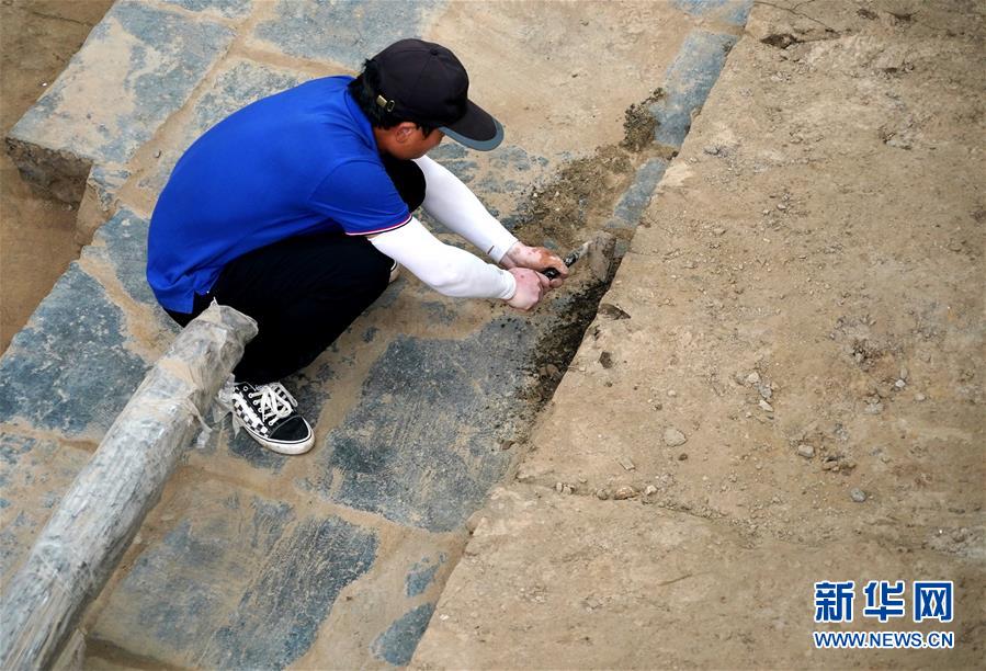 工作人員在河南省開封市州橋橋面進(jìn)行清理發(fā)掘(7月27日攝)。新華社記者李安攝