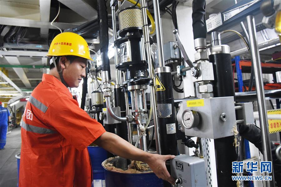 7月29日,“萬里黃河第一隧”——濟南黃河隧道工程施工人員在施工作業(yè)。新華社記者王凱攝