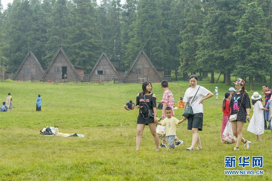 7月30日,游客在仙女山國家森林公園高山草場游玩。新華社記者劉潺攝