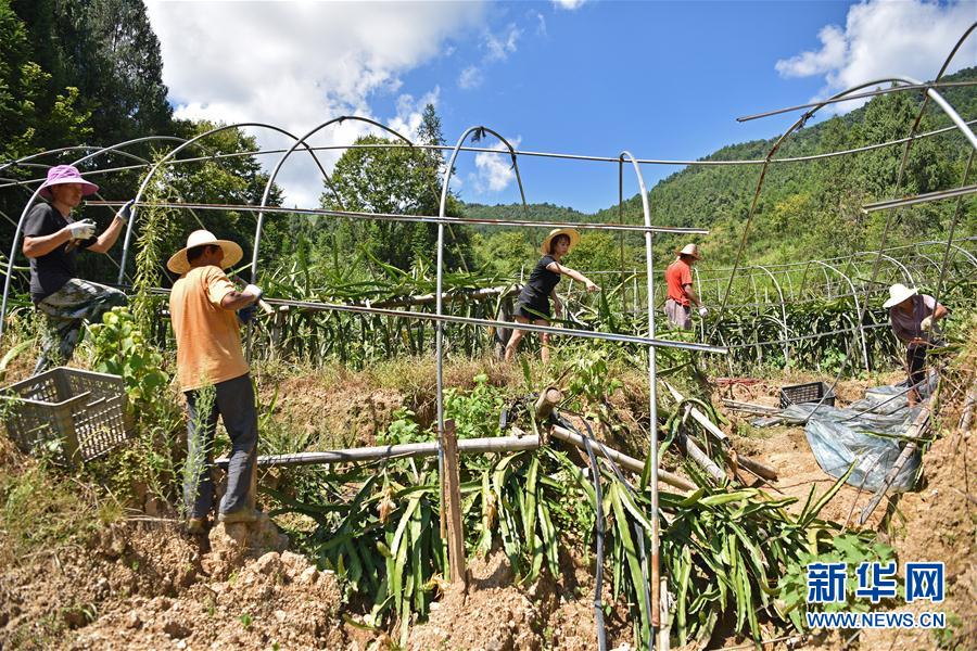 8月3日,在碗米坡鎮(zhèn)首八峒村,村民在搶修大棚。新華社記者李鑫攝