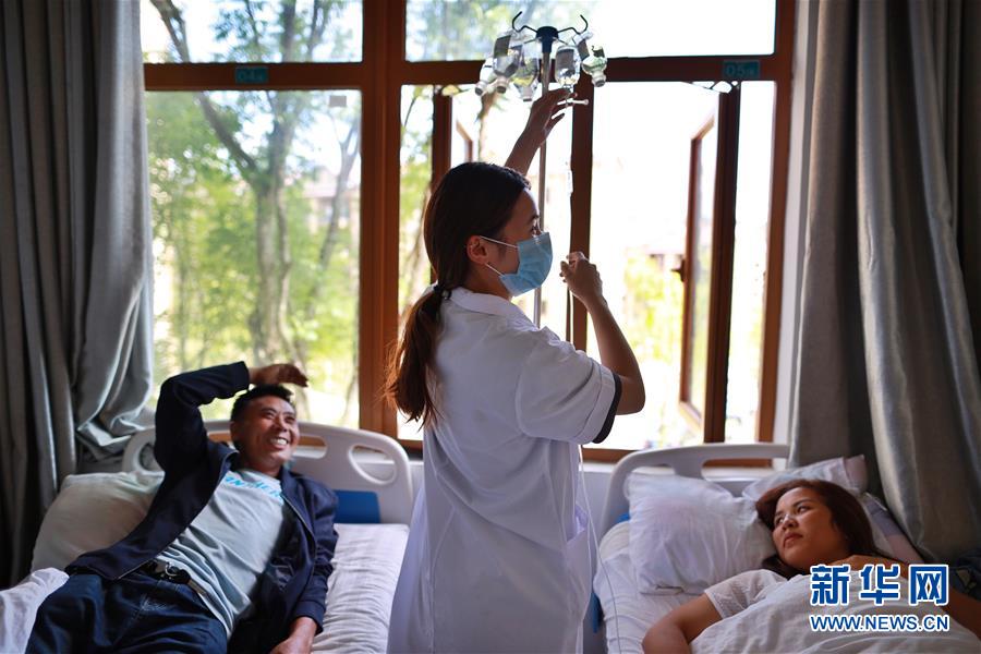 搬遷群眾在柏楊林易地扶貧搬遷安置點(diǎn)衛(wèi)生院內(nèi)治療(8月3日攝)。貴州省畢節(jié)市七星關(guān)區(qū)柏楊林易地扶貧搬遷安置點(diǎn)是畢節(jié)市最大的易地扶貧搬遷安置點(diǎn),總面積約1.1平方公里,從2017年開始至今,共有34個(gè)鄉(xiāng)鎮(zhèn)6372戶29001人安置到位。如今,安置點(diǎn)內(nèi)教育、醫(yī)療、就業(yè)扶貧車間、長(zhǎng)幼日間托養(yǎng)照料中心等設(shè)施齊全,搬遷群眾在這里過上了安居樂業(yè)的幸福生活。新華社記者劉續(xù)攝