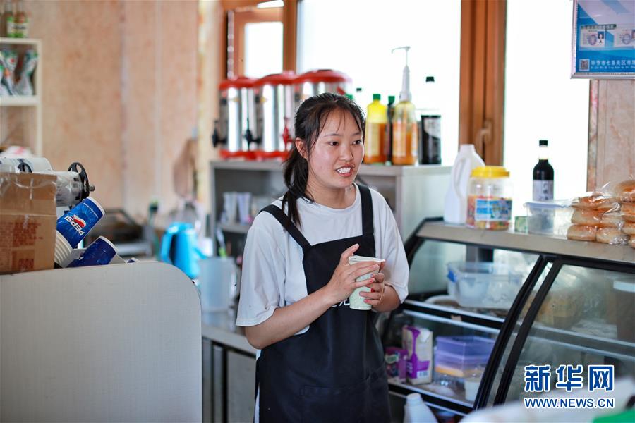 劉林在柏楊林易地扶貧搬遷安置點(diǎn)的一家奶茶店打工,她一個(gè)月可以掙2000多元(8月3日攝)。貴州省畢節(jié)市七星關(guān)區(qū)柏楊林易地扶貧搬遷安置點(diǎn)是畢節(jié)市最大的易地扶貧搬遷安置點(diǎn),總面積約1.1平方公里,從2017年開始至今,共有34個(gè)鄉(xiāng)鎮(zhèn)6372戶29001人安置到位。如今,安置點(diǎn)內(nèi)教育、醫(yī)療、就業(yè)扶貧車間、長(zhǎng)幼日間托養(yǎng)照料中心等設(shè)施齊全,搬遷群眾在這里過上了安居樂業(yè)的幸福生活。新華社記者劉續(xù)攝