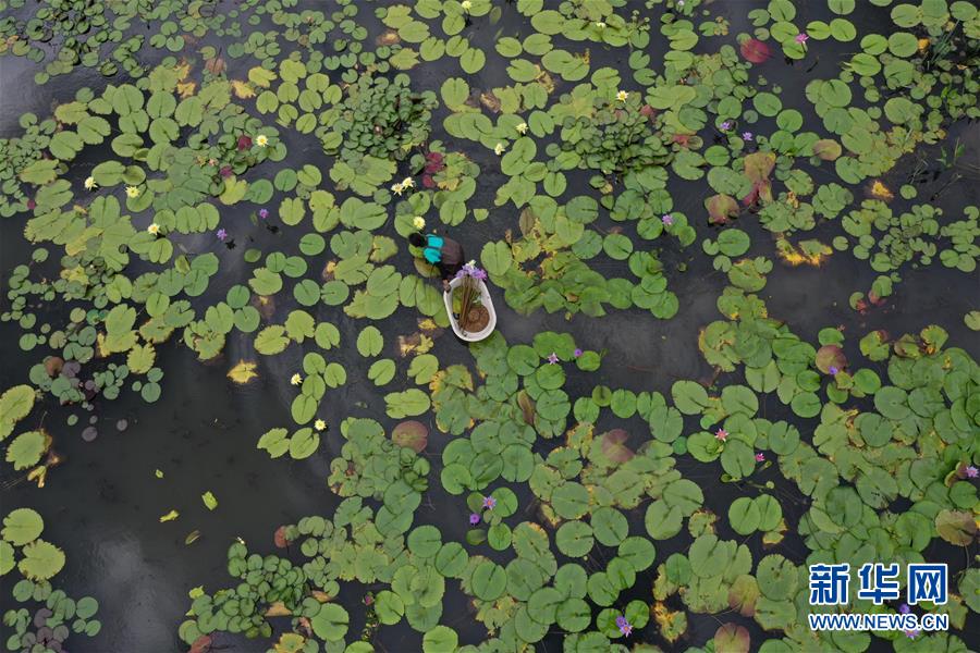 8月4日,藝溯家生態(tài)農(nóng)場工作人員在池塘采摘香水蓮花(無人機(jī)照片)。近年來,位于浙江湖州吳興區(qū)八里店鎮(zhèn)移沿山村的藝溯家生態(tài)農(nóng)場,在約45畝的傳統(tǒng)水產(chǎn)養(yǎng)殖池塘上規(guī)?;N植香水蓮花,既凈化水質(zhì),又提高了經(jīng)濟(jì)效益。農(nóng)場還設(shè)計(jì)出種植、采摘和加工香水蓮花的工藝流程,以面向更多農(nóng)戶推廣。新華社記者黃宗治攝