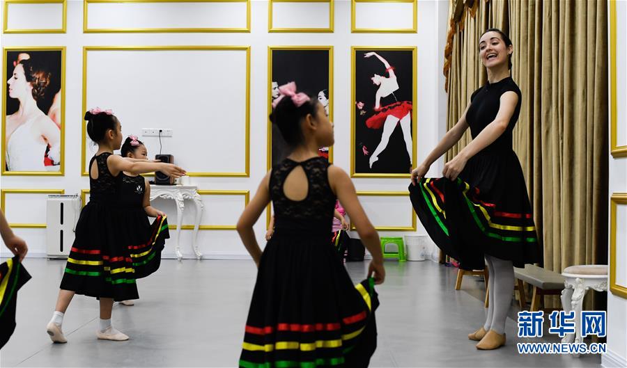 8月5日,在三亞吉普西芭蕾學校荔枝溝校區(qū),老師在指導學員練習芭蕾舞。暑假期間,海南三亞不少孩子來到芭蕾舞學校學習,在老師指導下學習了解芭蕾舞,感受芭蕾藝術的魅力,豐富假期生活。新華社記者楊冠宇攝