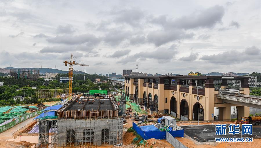 正在建設中的清遠磁浮銀盞溫泉站緊鄰廣清(廣州至清遠)城際鐵路銀盞站(畫面右側,8月5日攝)。目前,廣東首條中低速磁浮線——清遠磁浮旅游專線項目建設有序推進。廣東清遠磁浮旅游專線項目全長約38公里,分兩期建設。首期全長8.014公里,將在9月份開始鋪軌,預計在2020年底實現(xiàn)主體工程全面完工。新華社記者劉大偉攝