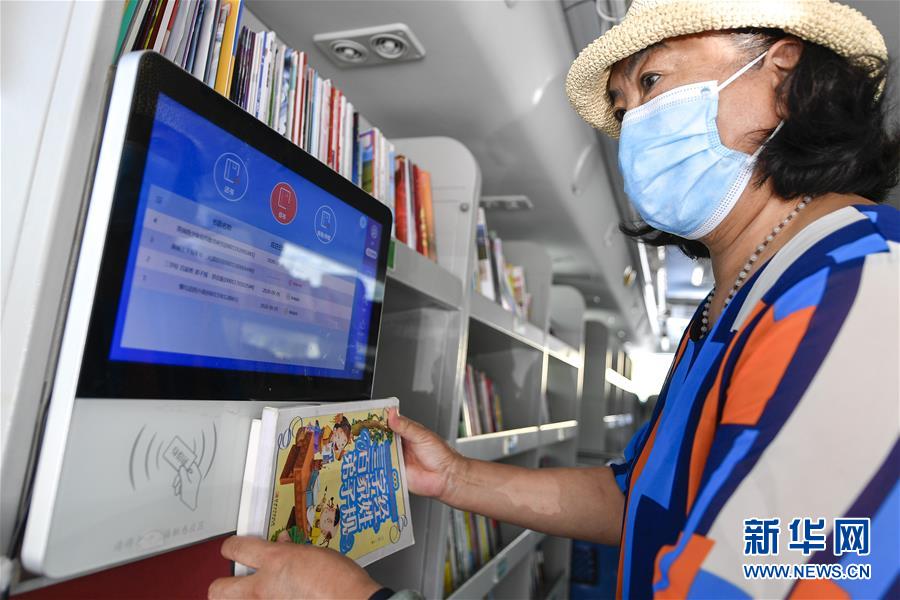 8月5日,長(zhǎng)春市民在“流動(dòng)圖書館”里自助辦理圖書借閱。三千冊(cè)圖書,一輛大巴車,穿梭在城市的街頭巷尾。在吉林長(zhǎng)春,長(zhǎng)春市圖書館利用流動(dòng)圖書車,定期在市內(nèi)15個(gè)固定服務(wù)點(diǎn)間巡回流動(dòng),為市民提供便捷的圖書借閱服務(wù)。新華社記者許暢攝