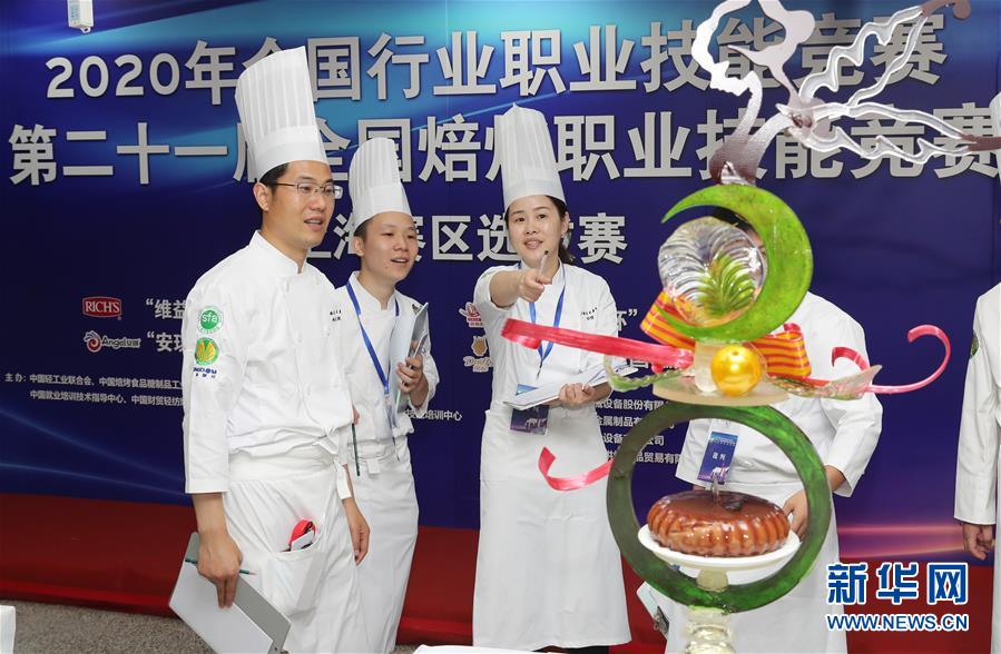 8月5日,評委在作品展示區(qū)為選手的作品打分。當(dāng)日,第二十一屆全國焙烤職業(yè)技能競賽上海賽區(qū)選拔賽,在上海市現(xiàn)代食品職業(yè)技能培訓(xùn)中心舉行,來自上海、江蘇、浙江等地的近60名焙烤行業(yè)技師,在藝術(shù)面包、傳統(tǒng)糕點、糖藝和藝術(shù)巧克力等項目中進(jìn)行比拼,在充滿焙烤香氣的賽場上展現(xiàn)技藝。新華社記者方喆攝