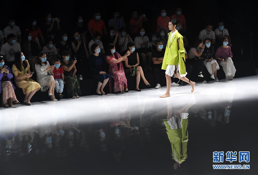 8月6日,模特在時裝秀上展示時裝。當日,2020中國(河南)國際大學(xué)生時裝周舉行河南大學(xué)生優(yōu)秀服裝設(shè)計專場展示。8月5日至7日,2020中國(河南)國際大學(xué)生時裝周在河南省新密市豫發(fā)密蘭小鎮(zhèn)舉行。新華社記者朱祥攝