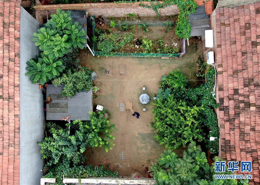 8月5日,王曉楠與父親在自家庭院內(nèi)勞作(無(wú)人機(jī)照片)。新華社記者郝源攝