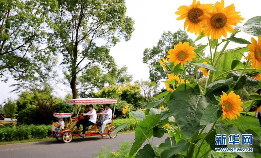 游客在上海市金山區(qū)的花開海上生態(tài)園游玩(6月26日攝)。新華社記者方喆攝