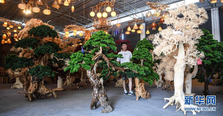這是8月7日在永??h永安鄉(xiāng)根雕工藝品就業(yè)扶貧車間拍攝的根雕工藝品。2017年以來,廣西桂林市永福縣永安鄉(xiāng)通過幫扶返鄉(xiāng)青年創(chuàng)業(yè)的方式,建立起根雕工藝品就業(yè)扶貧車間,組織貧困群眾進(jìn)車間務(wù)工學(xué)藝,把當(dāng)?shù)刎S富的朽木和柑橘樹根枝資源利用起來,加工成盆景、茶桌、吊燈等根雕工藝品,不僅幫助貧困群眾在家門口掌握一技之長,還讓他們在脫貧摘帽后實現(xiàn)穩(wěn)定增收。新華社記者張愛林?jǐn)z