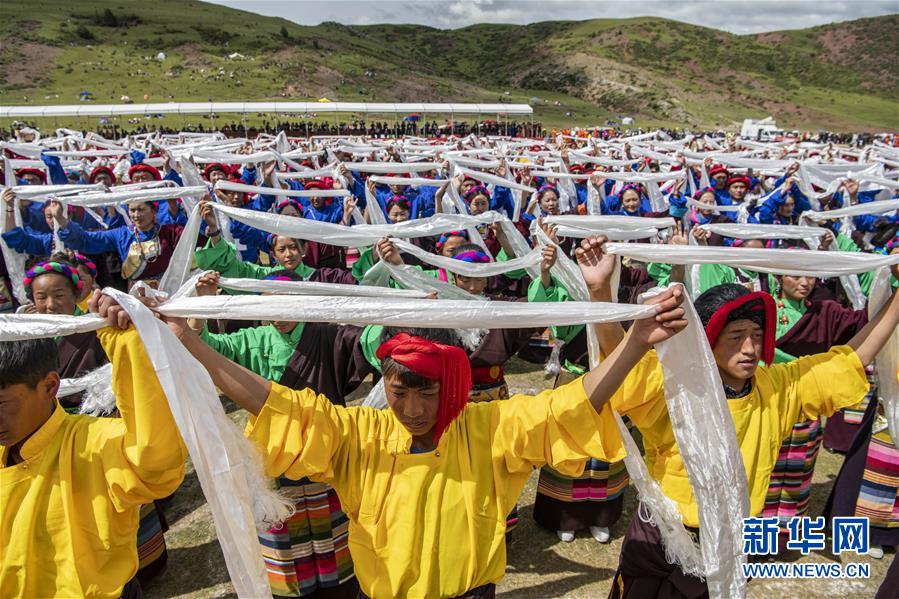 8月7日,在西藏首屆弦子舞展演現(xiàn)場,演出人員在表演弦子舞。當(dāng)日,西藏首屆弦子舞展演在昌都市芒康縣舉行。眾多演員同臺獻(xiàn)藝,表演國家級非物質(zhì)文化遺產(chǎn)弦子舞,吸引西藏各地的群眾前來觀看。新華社記者孫非攝