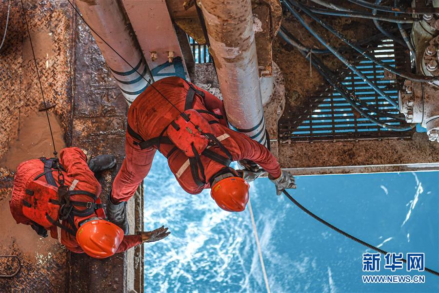 鉆井隊(duì)分兩班24小時(shí)不間斷運(yùn)轉(zhuǎn)。在一個(gè)班次中,9名鉆井工人協(xié)同操控鉆井設(shè)備,鉆探著海洋油氣資源。契入海底的“探針”常可達(dá)五、六千米。