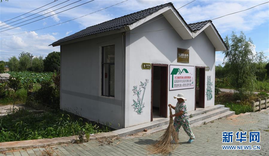 鄂州市長港鎮(zhèn)峒山村村民在打掃衛(wèi)生(8月6日攝)。新華社記者 程敏 攝