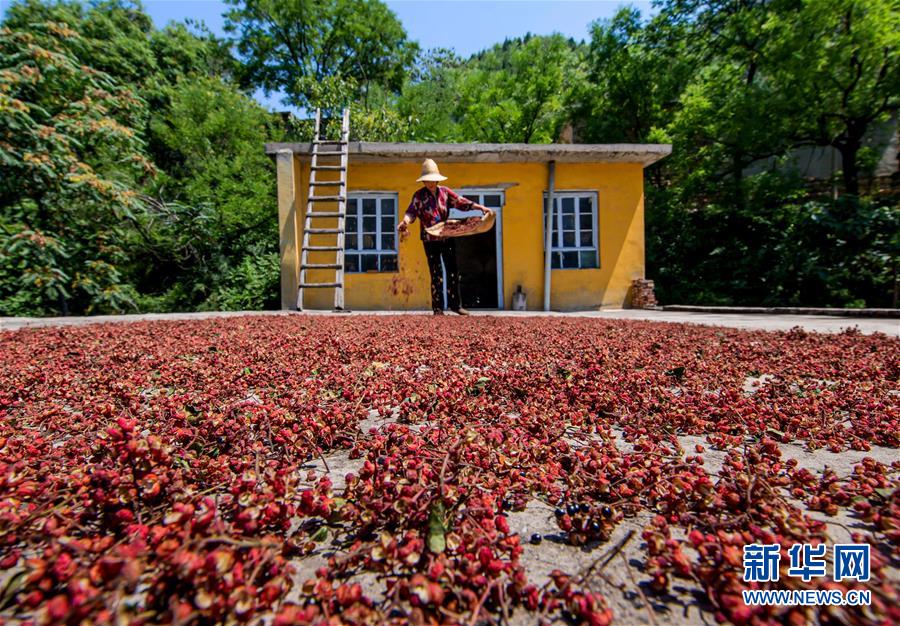 8月9日,武安市徘徊鎮(zhèn)后李甲村農(nóng)民在涼曬采摘的花椒。近日,河北省武安市花椒進入收獲季節(jié),當?shù)剞r(nóng)民搶抓農(nóng)時,花椒種植基地里一派忙碌景象。近年來,武安市將花椒產(chǎn)業(yè)作為脫貧增收的重要抓手,因地制宜擴大花椒種植規(guī)模。目前,全市花椒種植面積約12萬畝。新華社記者王曉攝。