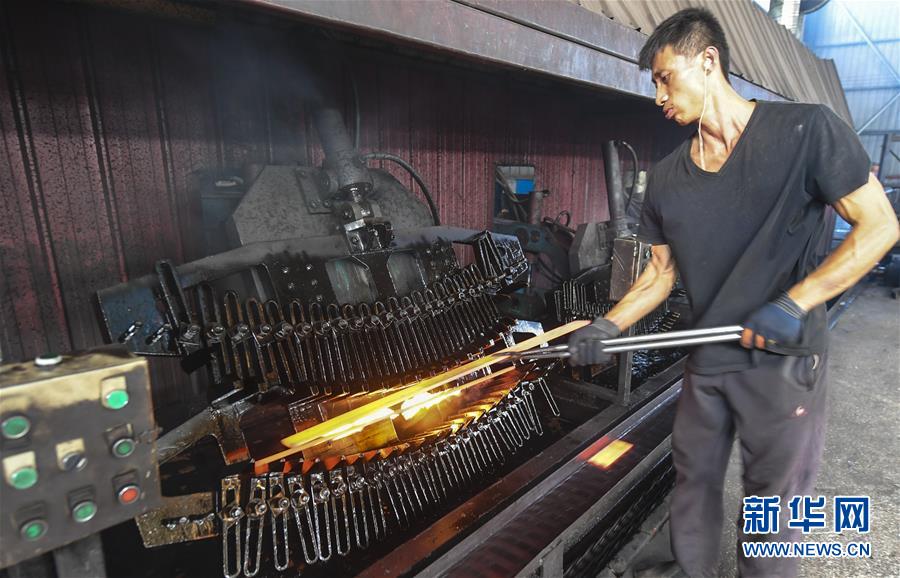 8月9日,河北大城縣南趙扶鎮(zhèn)一家板簧生產(chǎn)企業(yè)員工在板簧淬火生產(chǎn)線上作業(yè)。河北省大城縣南趙扶鎮(zhèn)是該縣農(nóng)機配件行業(yè)傳統(tǒng)生產(chǎn)基地。疫情以來,南趙扶鎮(zhèn)引導企業(yè)做好風險防范,在農(nóng)機配件行業(yè)與世界各地客商及品牌開展方式多樣的合作,出口訂單不降反升。截至目前,該縣農(nóng)機配件行業(yè)出口總銷量達8000余萬元,較去年同期增長30%。新華社記者李曉果攝。