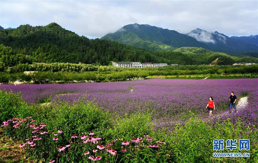 市民在位于陜西漢中市留壩縣城的金水灣花海散步(7月2日攝)。近年來,陜西地處秦巴山區(qū)的多個縣市結(jié)合當(dāng)?shù)刈匀粴夂驐l件打造特色花海景觀,利用“花海經(jīng)濟(jì)”助力脫貧攻堅和鄉(xiāng)村振興。新華社記者劉瀟攝。