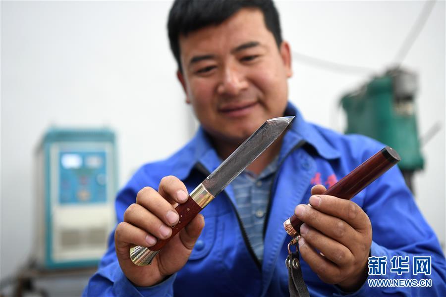 近年來,甘肅省臨夏回族自治州積石山縣通過建設保安腰刀鍛制技藝扶貧車間和工藝坊等形式,積極發(fā)展特色非遺經(jīng)濟,讓貧困群眾通過鍛制腰刀,傳承保護傳統(tǒng)技藝,拓寬收入渠道,助力脫貧致富。