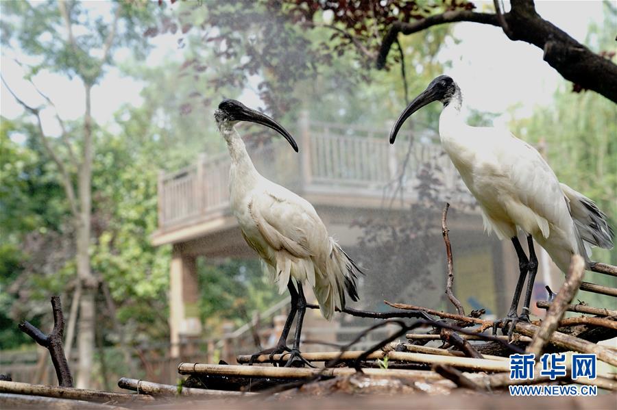 8月11日,上海動(dòng)物園的兩只白鹮在享受噴淋降溫。當(dāng)日,上海最高溫度達(dá)到35攝氏度,上海動(dòng)物園開啟園內(nèi)安裝的各種噴淋裝置,讓動(dòng)物們防暑降溫,樂(lè)享清涼。新華社記者張建松攝