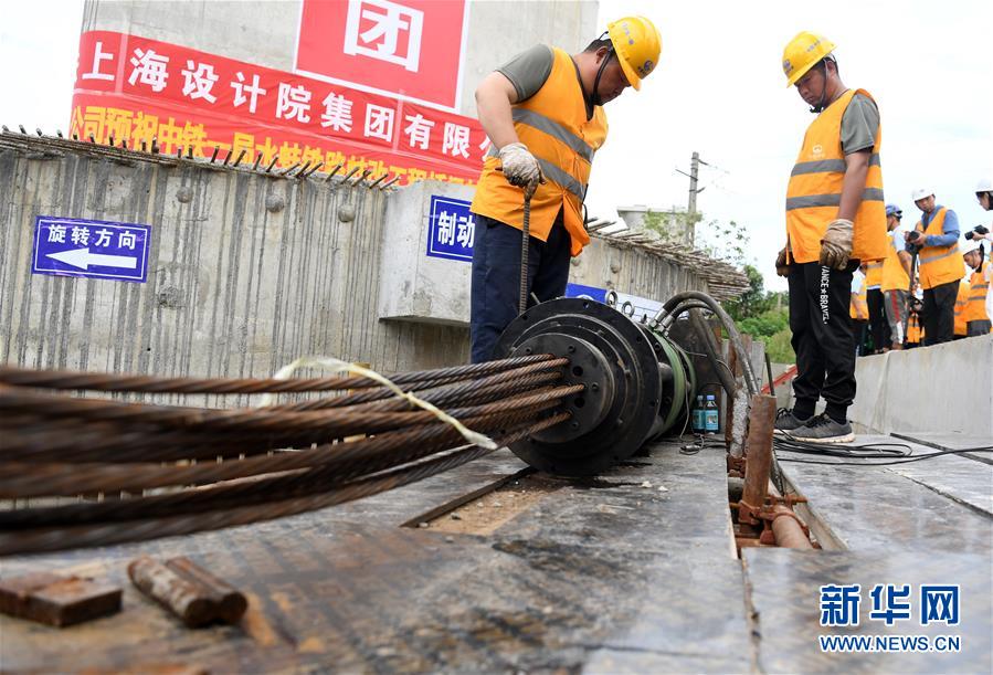 8月12日,中鐵一局施工人員在轉體梁轉體施工現場作業(yè)。新華社記者 劉軍喜 攝
